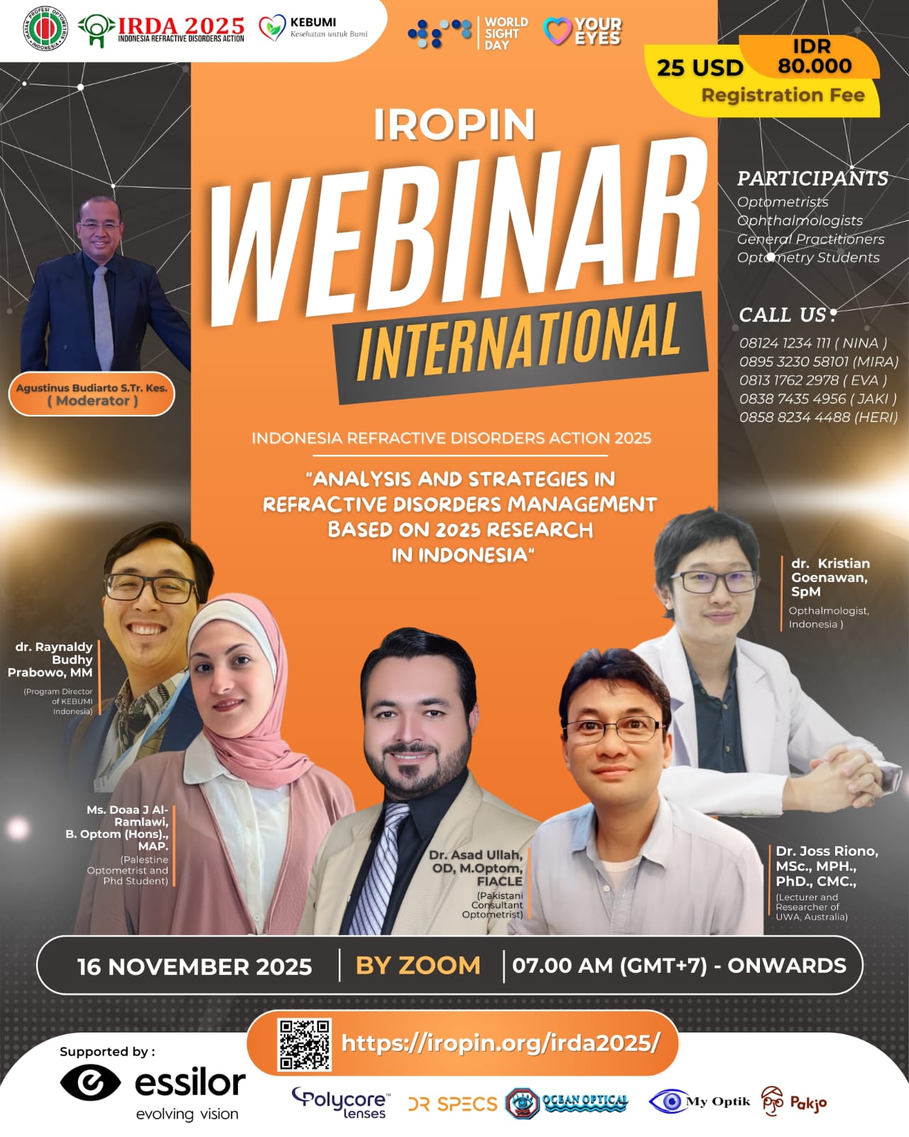 The IROPIN International Webinar: WSD 2025 – Indonesia Refractive Disorders Action 2025 is an exciting event that brings together experts and professionals in the field of eye health to discuss the pressing issue of refractive disorders. With a focus on Indonesia, this webinar will deliver the latest insights and research findings on the prevalence, risk factors, and impact of refractive disorders on future eye health.